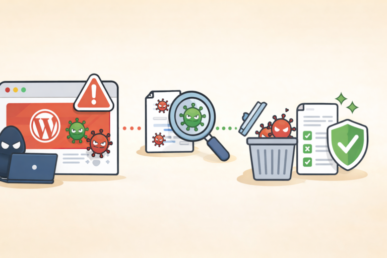 この記事では、WordPressがマルウェアに感染したときに今すぐやるべき7つの対処法を、手順ごとにわかりやすく解説します。自分でできる作業と、プロに任せるべき判断基準も明示しますので、ぜひ最後まで読んで冷静に対応してください。