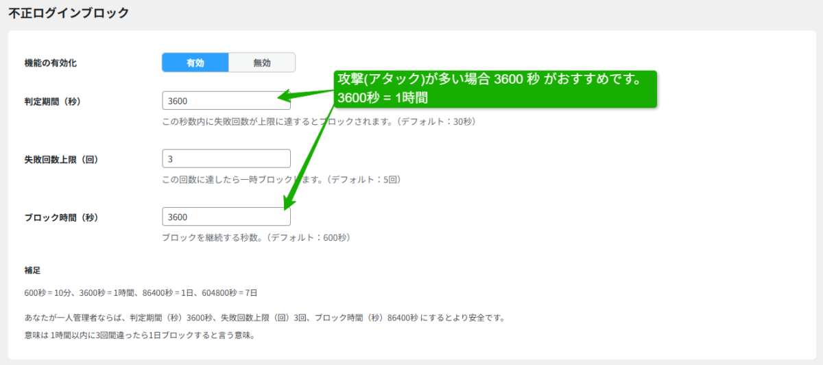 - 判定時間 3600秒(1時間)