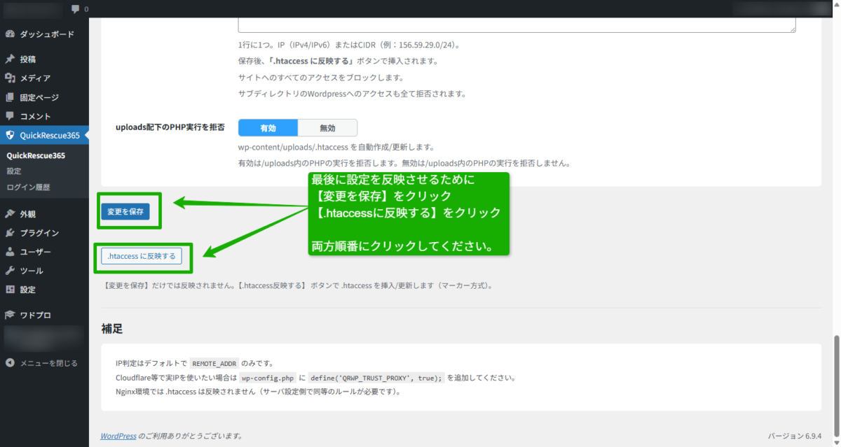 クイックレスキュー365の使い方:.htaccessハードニング