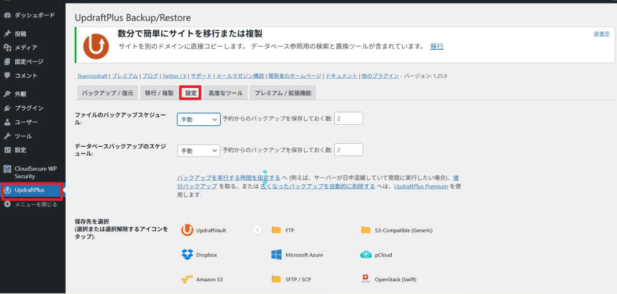 - 初心者は「UpdraftPlus」