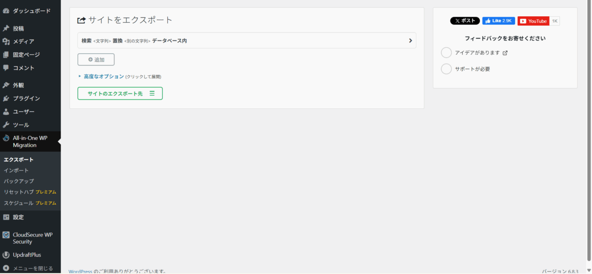 - サイト移行や引っ越しなら「All-in-One WP Migration」