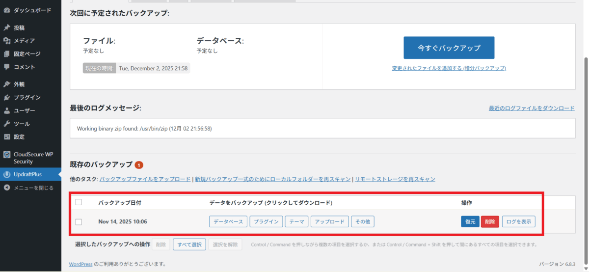 これにより、万が一の障害や誤操作にも安心して対応でき、WordPressサイトを安定的に運用できるようになります。