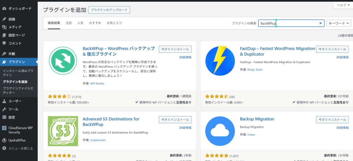 - 「BackWPup」で検索