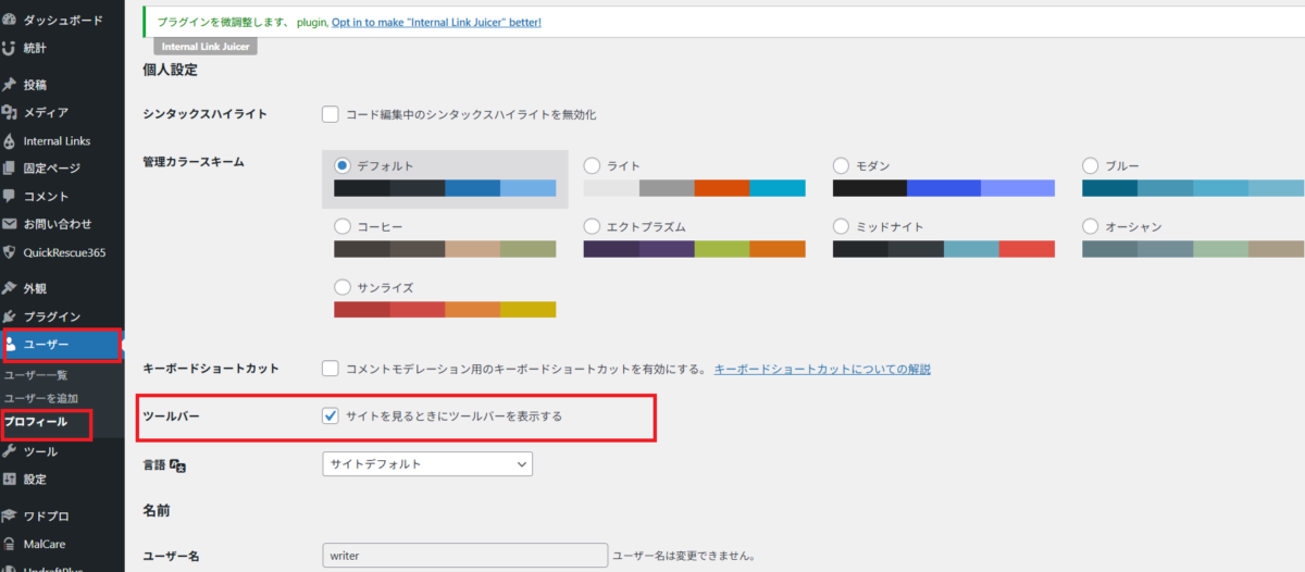 最も多いのは、プロフィール画面で「サイトを見るときにツールバーを表示する」のチェックが外れているケースです。この設定がOFFだと、ログインしていてもフロント側にツールバーが出ません。
