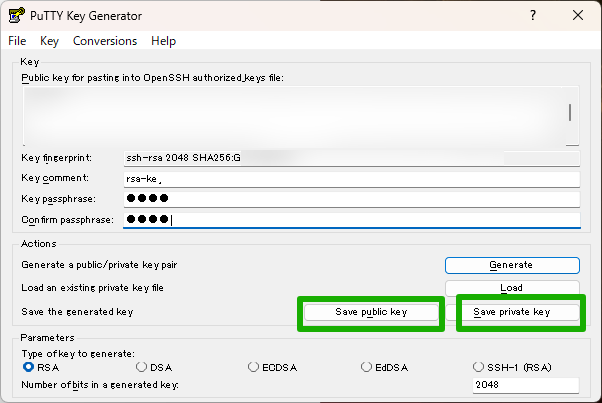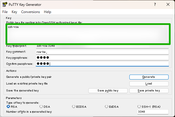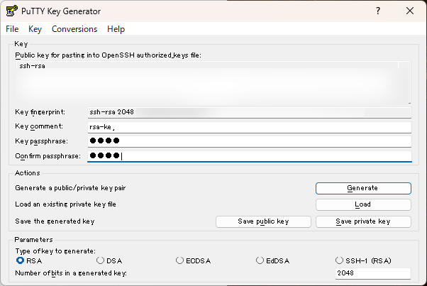 PuTTYgenでSSH接続に必要な鍵情報を作成3