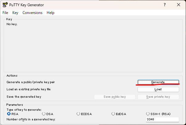 PuTTYgenを起動するとこの画面になります。